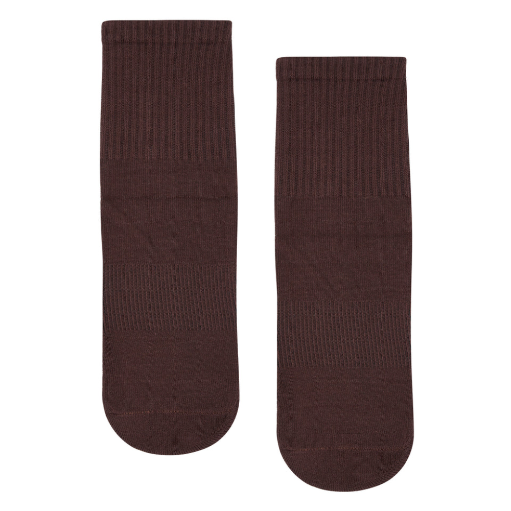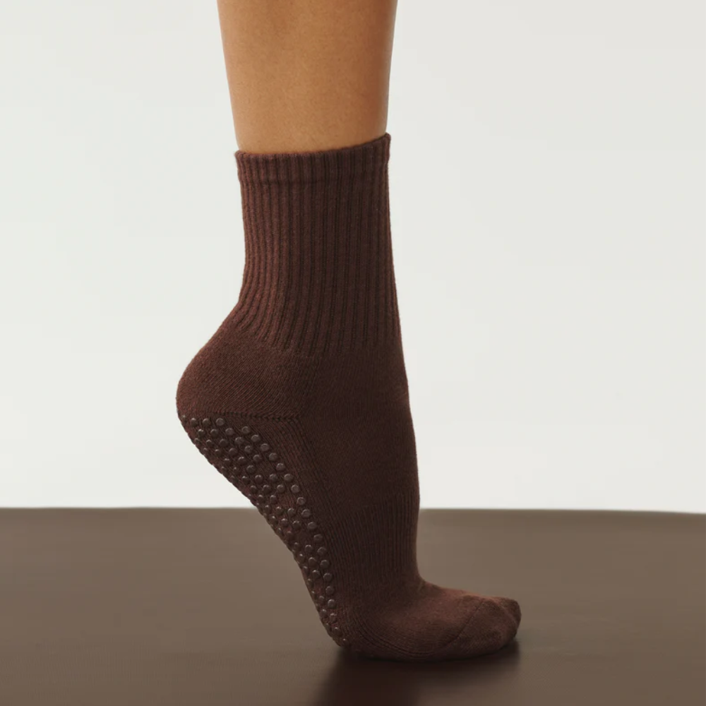 Designed for comfort and stability, these crew-length grip socks are perfect for Pilates, yoga, barre, and studio workouts. The rich espresso tone adds a sleek, understated style to your activewear.